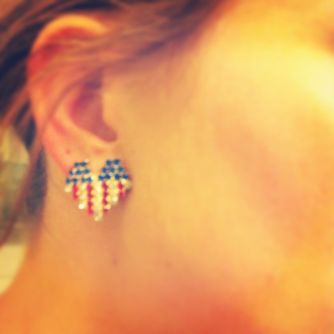 Igår var det 4th of July och det firar jag alltid! USA har haft stor betydelse i mitt liv och jag älskar stars and stripes för att det får mig att tänka på en massa roliga minnen, glädjestunder med vänner och allt roligt med USA. Sen har dom ju världens snyggaste flagga som jag gärna klär mig i... Och örhängena som jag fick av Tessan för ett par år sen är så mycket Chris!
